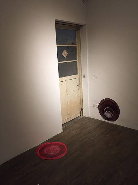 不管是平面的畫作、剪裁過的畫布或裝置作品,似乎藉作品與動線引領著觀眾由外向內地認識這位年輕的藝術家,而那名喚《路徑》的作品中閃爍不定的閃光與鳴聲是否又表示另一條未知的路徑!!