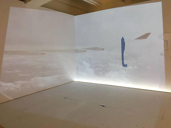 我很喜歡展場中有個影像,投映在舞台末端的牆面上,內容是湯皇珍在飛機上的隨手錄影,雖我早已不能看見眼前風景,但聽著影像的描述,我也好像飛翔在天空中,感受到那一段段旅程的起落,我們終將降臨、踏上回家的路途中吧!